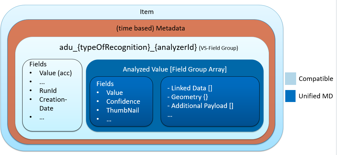 Every ADU item metadata field group and fields start with the prefix adu_. As this prefix is added by VidiNet Cognitive Services, it